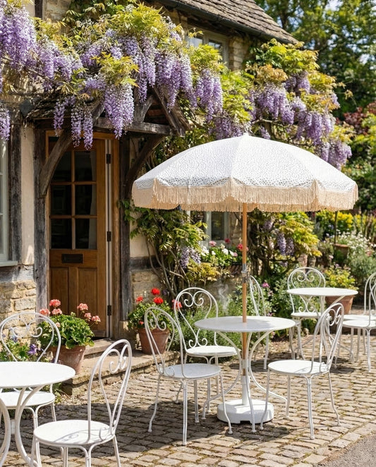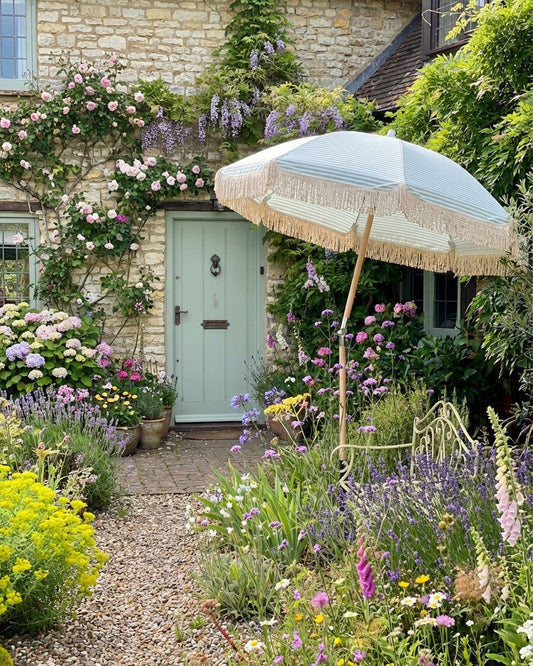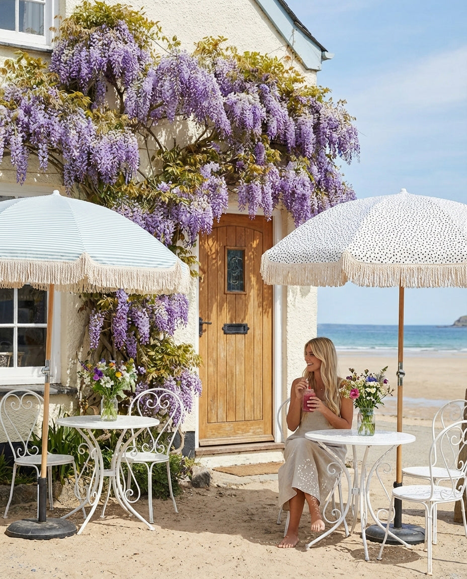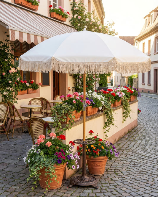 Get your garden summer-ready in a few simple steps with our collection of essential umbrellas for stylish and practical outdoor living. In the photo: Green Wave umbrella