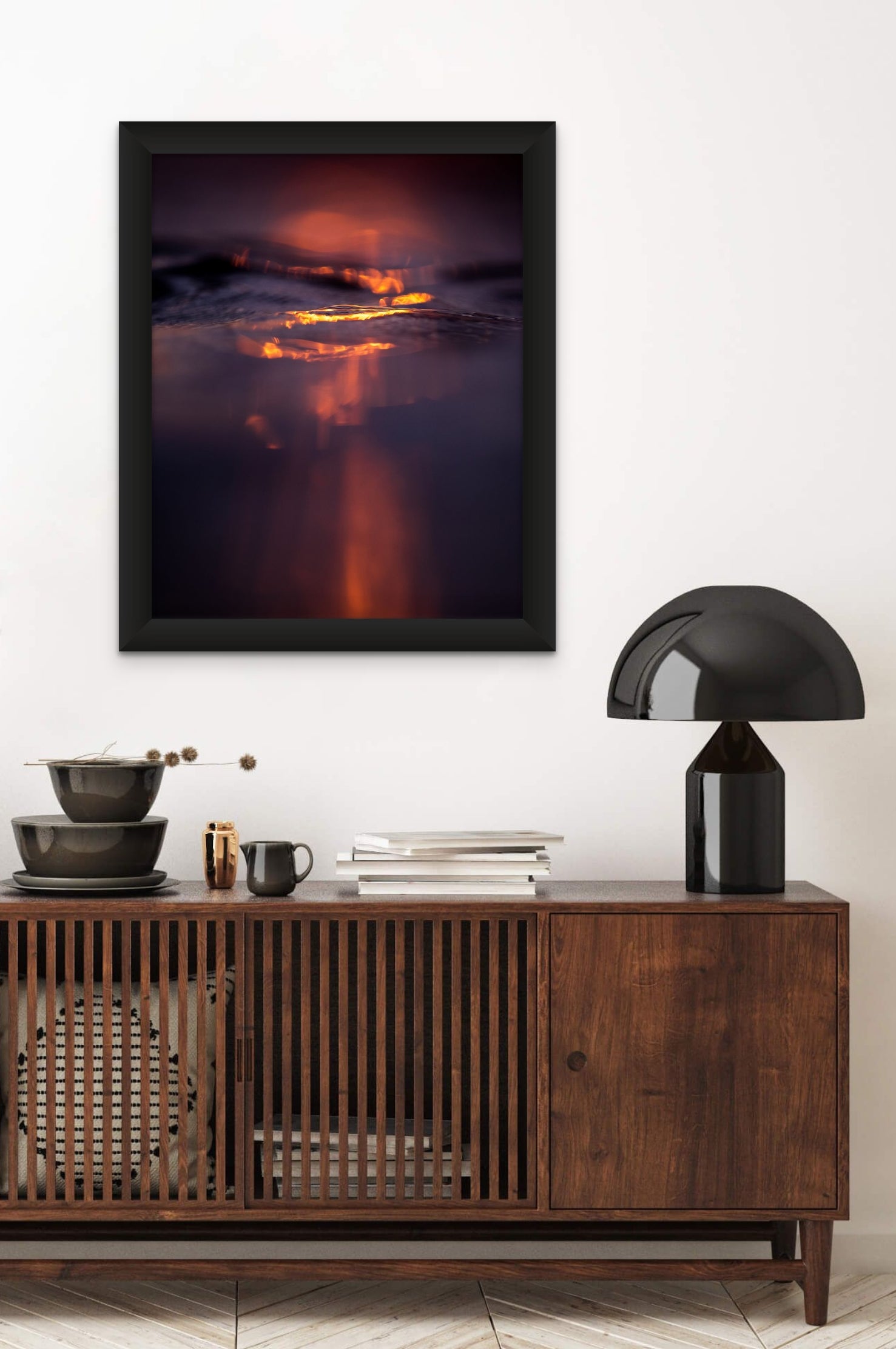 Unlock the mystery of the seas with Autumn Fire. This stunning image captures the dazzling beauty of the ocean surface during the sunset, resembling a mesmerizing fire. Be captivated and experience the sublime by hanging this fine art masterpiece in your home.