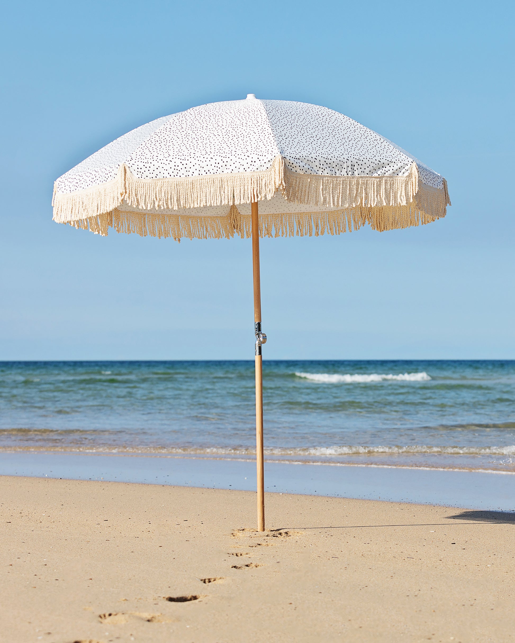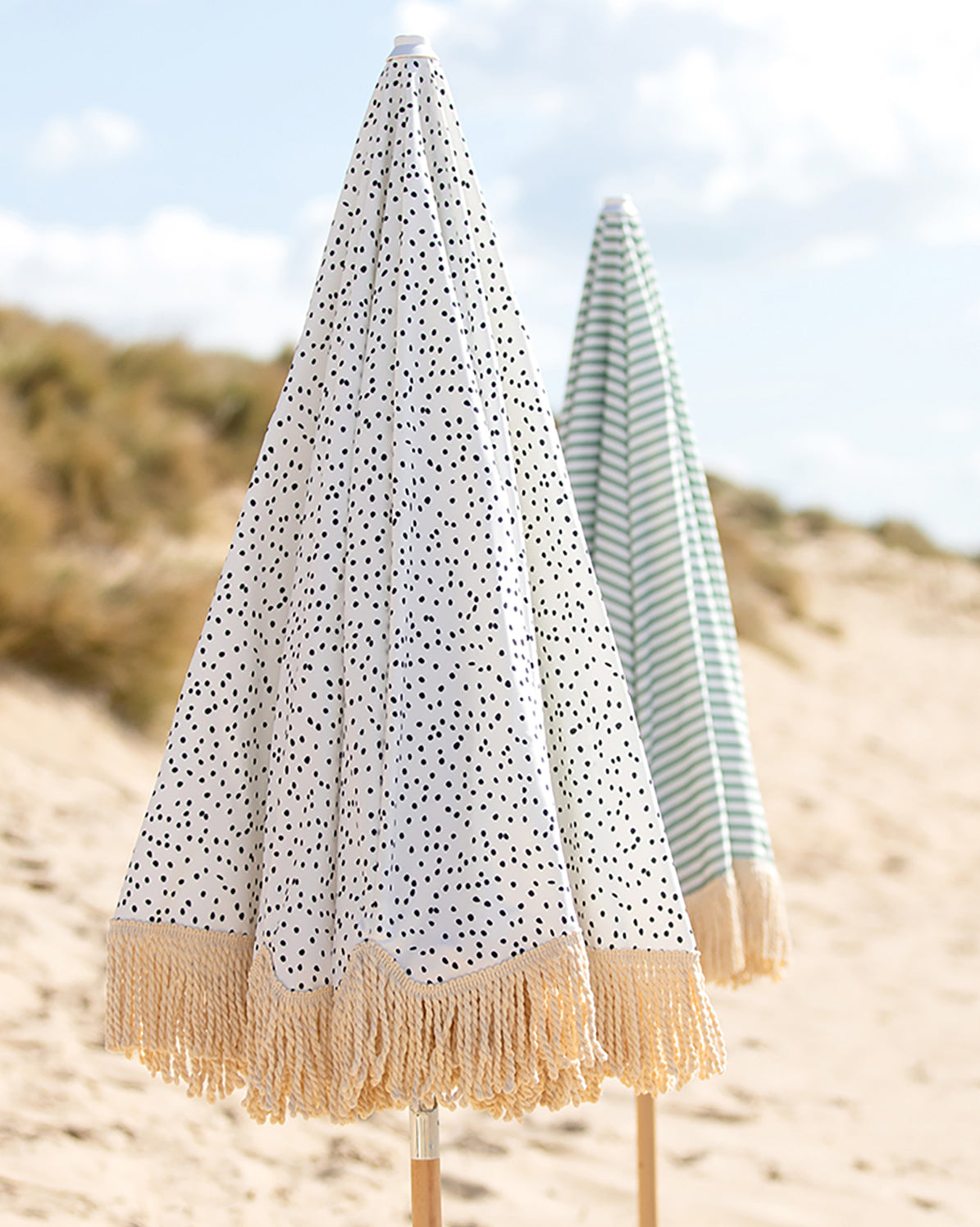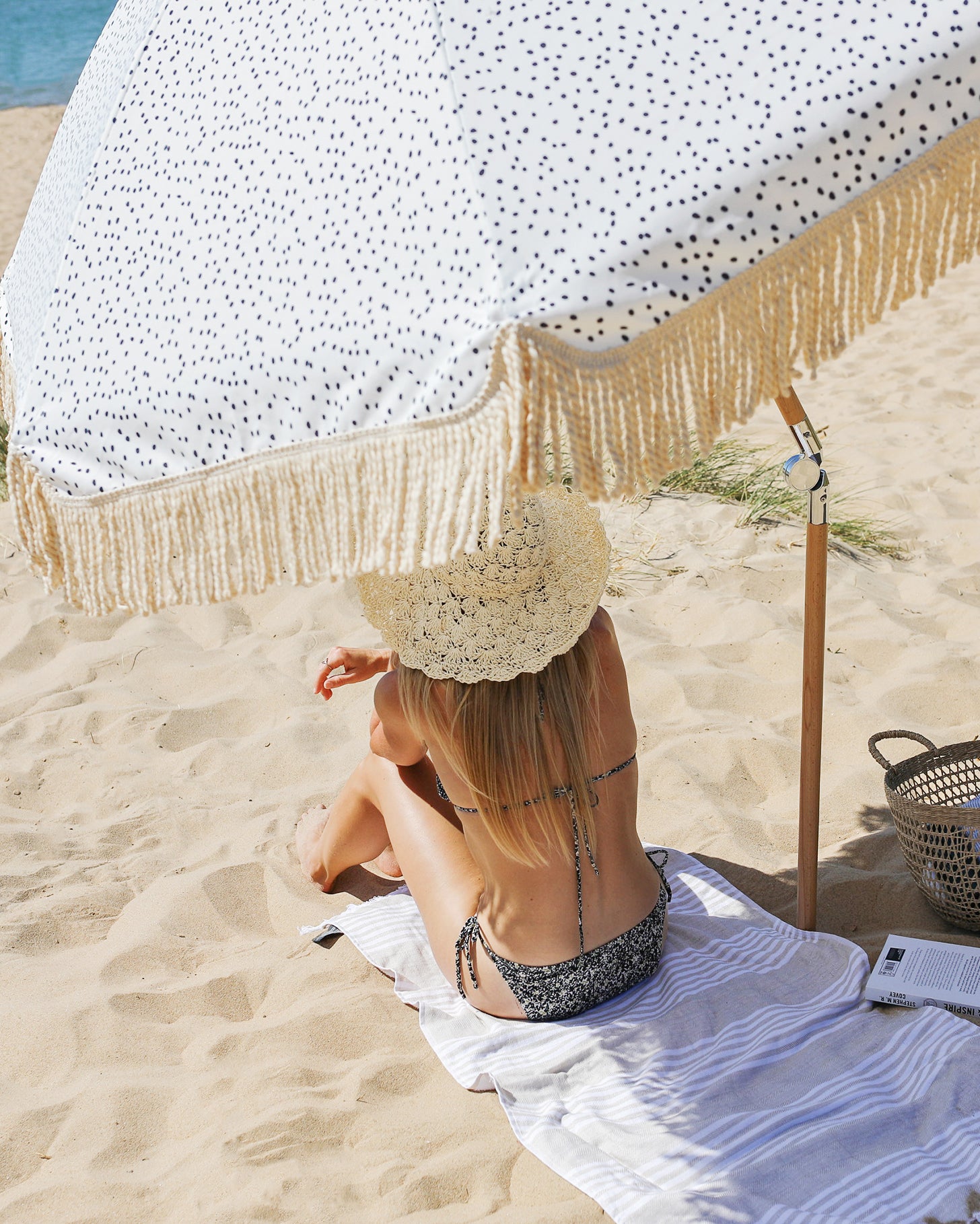 Luxury Beach Umbrella with 100% cotton tassels created for your ultimate beach day or a relaxing day in the garden.