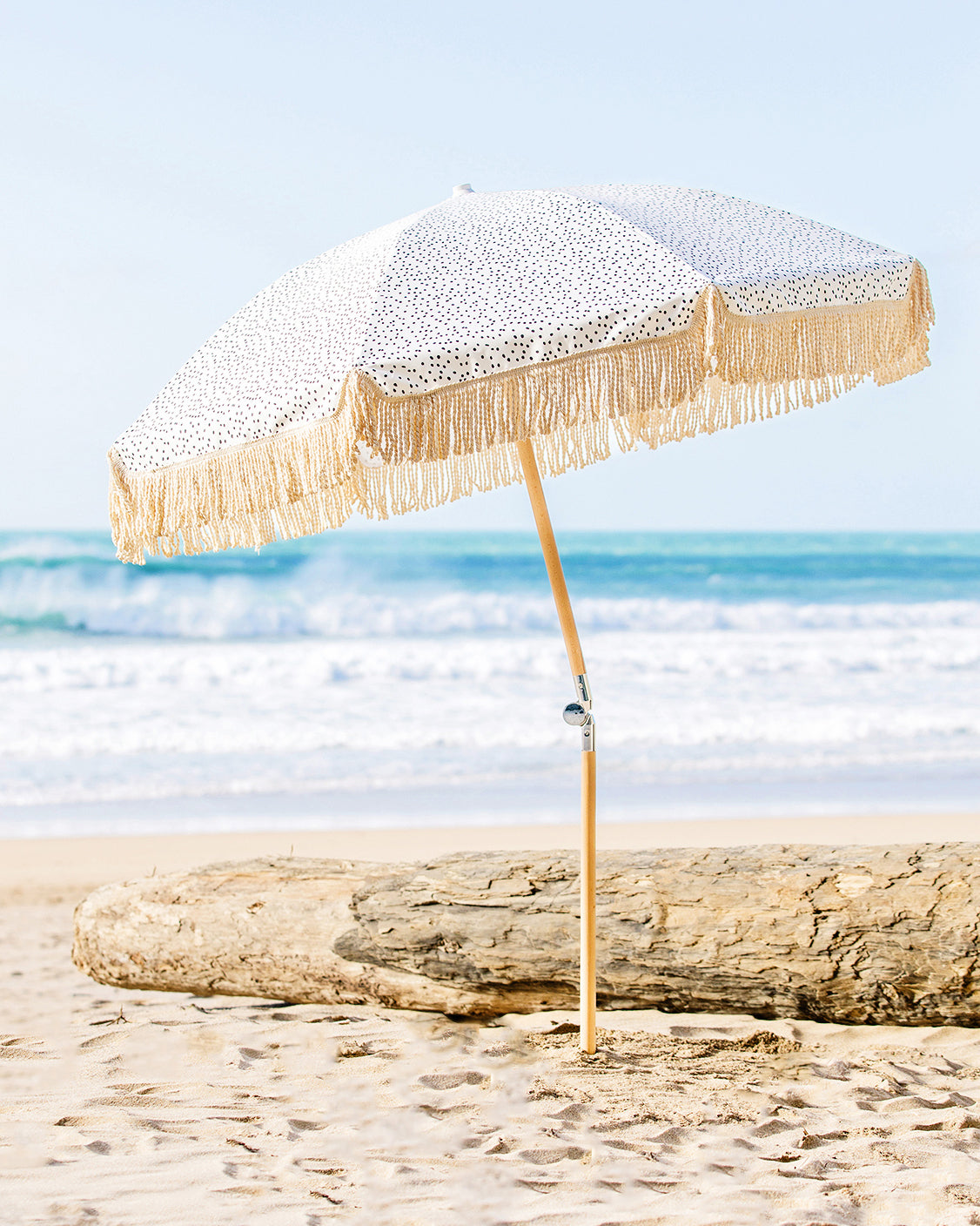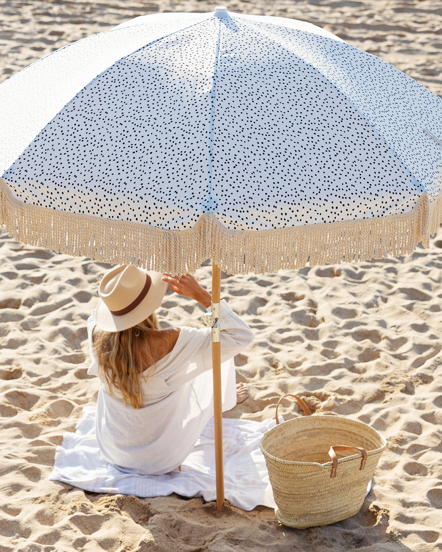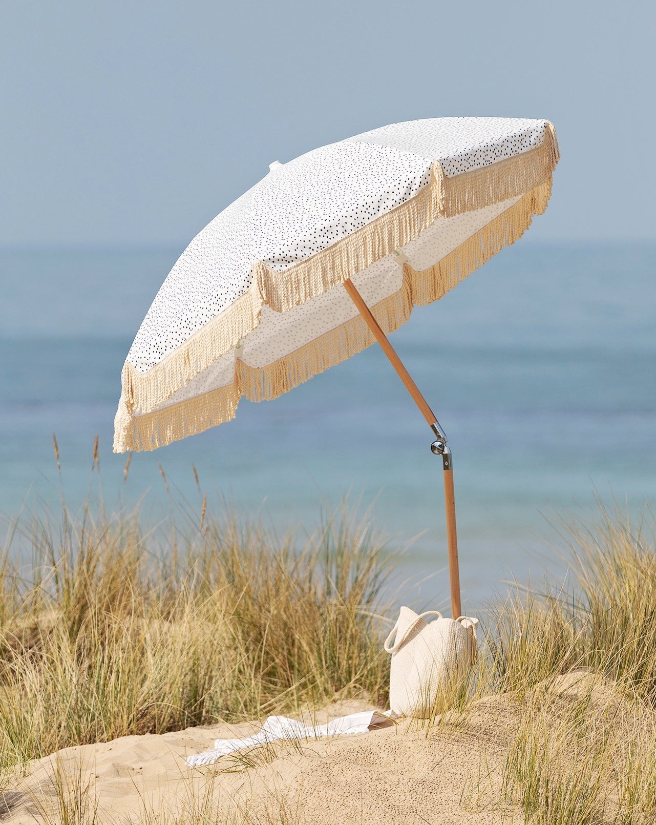 Luxury Beach Umbrella with 100% cotton tassels created for your ultimate beach day or a relaxing day in the garden.