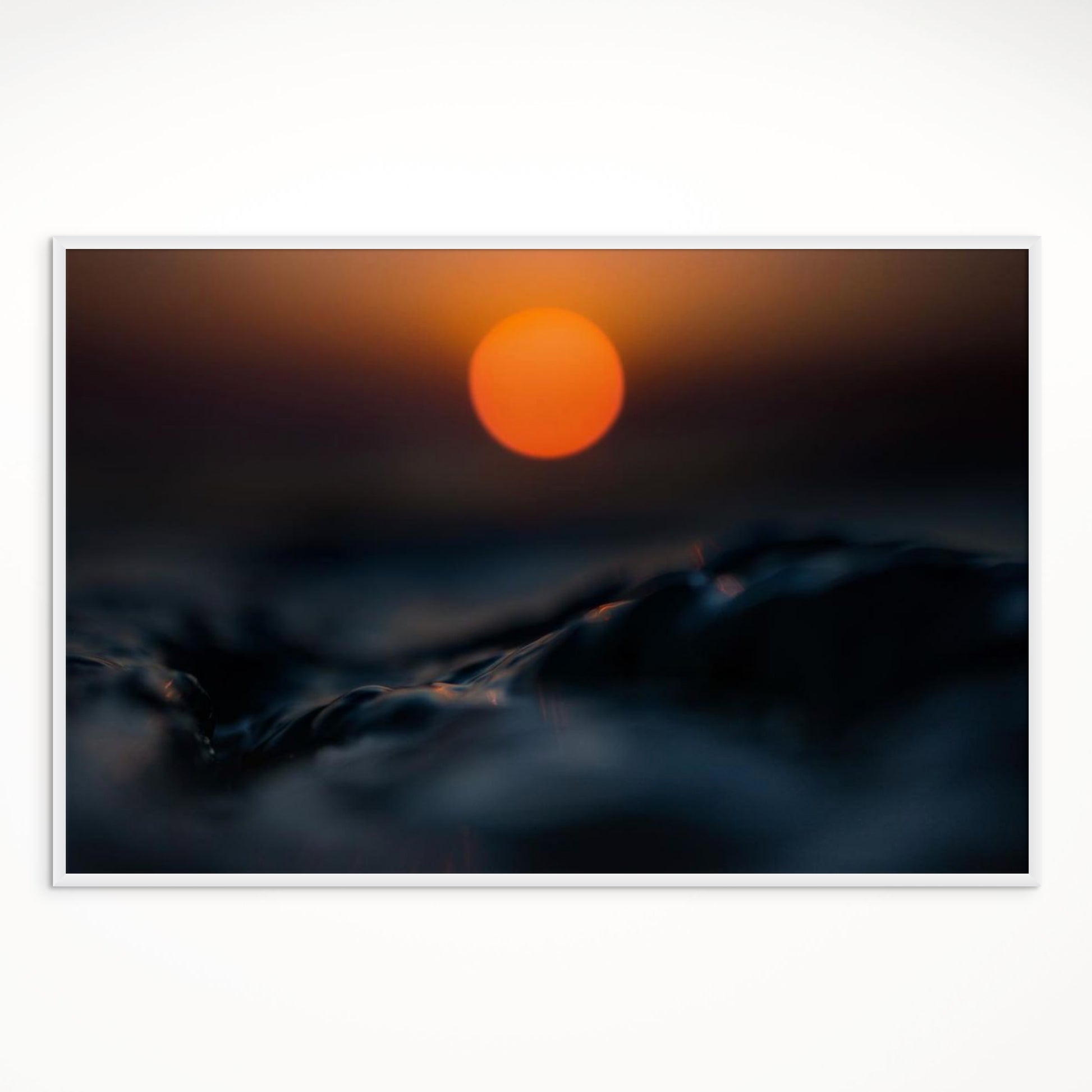 Behold the breathtaking beauty of a Dorset sunset from the ocean's surface. This exclusive print captures the perfect hazy blend of colors, from fiery oranges, to glowing yellows. A stunning addition to any wall, 'Dorset Sunset' evokes the tranquility of a bygone evening.