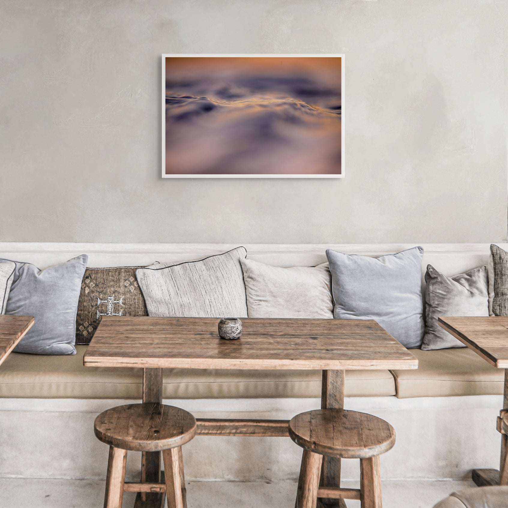 Experience the tranquil beauty of the ocean with "Intersection," an exquisite shot of the serene surface. Capture the captivating afterglow radiating from the horizon for a soulful and artistic moment.
